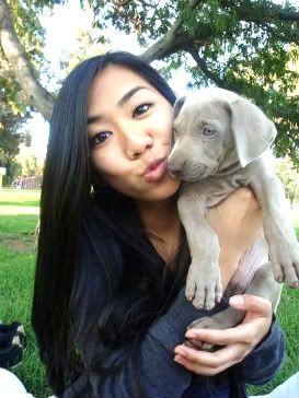 LooK! It's a Weimaraner puppy! He is 6 weeks old, grey, and has BLUE EYES! Damn this puppy grows up fast! He's so lazy too! LOL David should name it SLEEPY HEAD! Every time it's laying on your arm it just falls asleep! xD HAHA I think it only looks cute when it's a puppy. ^_^
